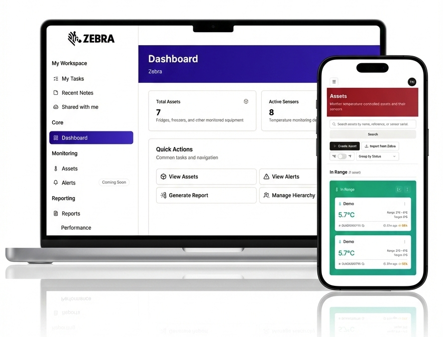 Certified ±0.3°C accuracy from Zebra ZS300 sensors ensures safe temperatures and confident compliance reporting.